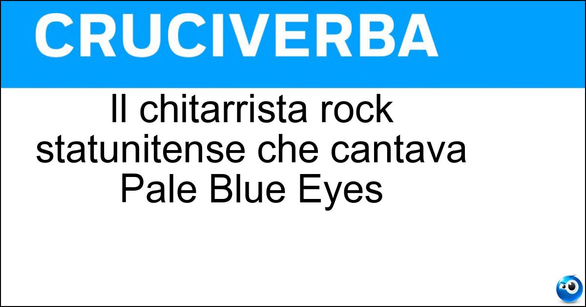 Nei cruciverba e nelle parole crociate, la definizione "Il chitarrista rock statunitense che cantava Pale Blue Eyes" corrisponde a una soluzione formata da 7 lettere. È un quesito ricorrente nel mondo dell’enigmistica, presente con frequenza sia nelle griglie stampate sia nei giochi digitali dedicati agli appassionati.