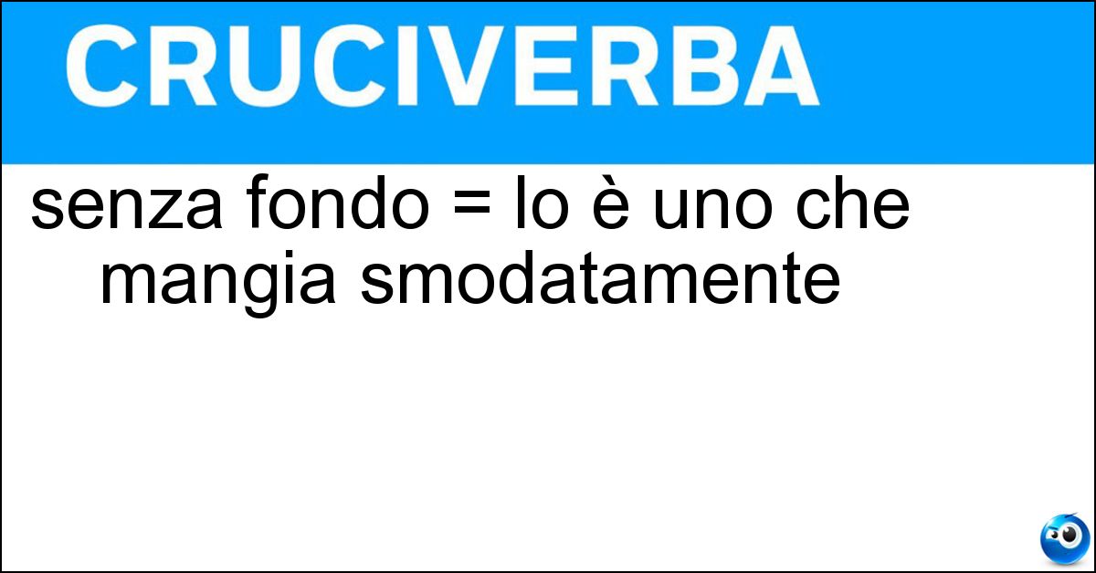Nei cruciverba e nelle parole crociate, la definizione "senza fondo = lo è uno che mangia smodatamente" corrisponde a una soluzione formata da 5 lettere. È un quesito ricorrente nel mondo dell’enigmistica, presente con frequenza sia nelle griglie stampate sia nei giochi digitali dedicati agli appassionati.