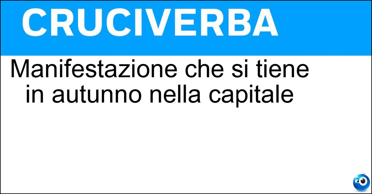 Nei cruciverba e nelle parole crociate, la definizione "Manifestazione che si tiene in autunno nella capitale" corrisponde a una soluzione formata da 14 lettere. È un quesito ricorrente nel mondo dell’enigmistica, presente con frequenza sia nelle griglie stampate sia nei giochi digitali dedicati agli appassionati.