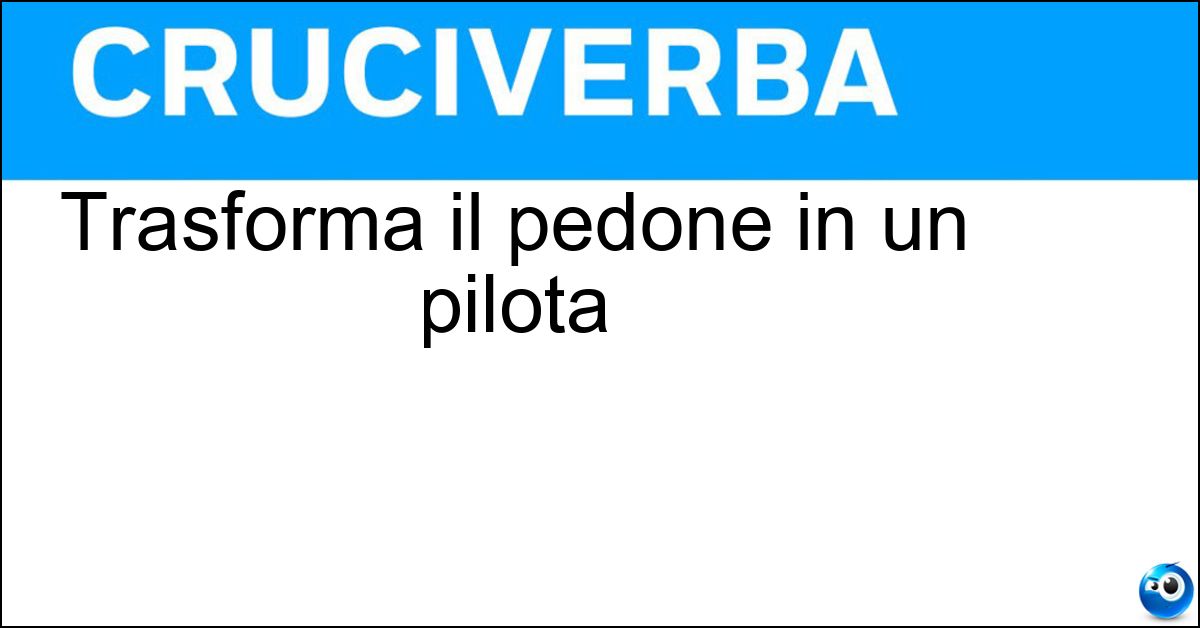 La soluzione associata alla definizione "Trasforma il pedone in un pilota" è riportata in questa pagina per agevolare la compilazione del cruciverba. In alcuni casi, il significato della definizione può variare leggermente in base al contesto del cruciverba e alle lettere fornite dagli incroci. Nonostante queste possibili differenze, l’analisi effettuata su "Trasforma il pedone in un pilota" conferma che la soluzione indicata è quella più coerente e compatibile con la maggior parte degli schemi italiani.