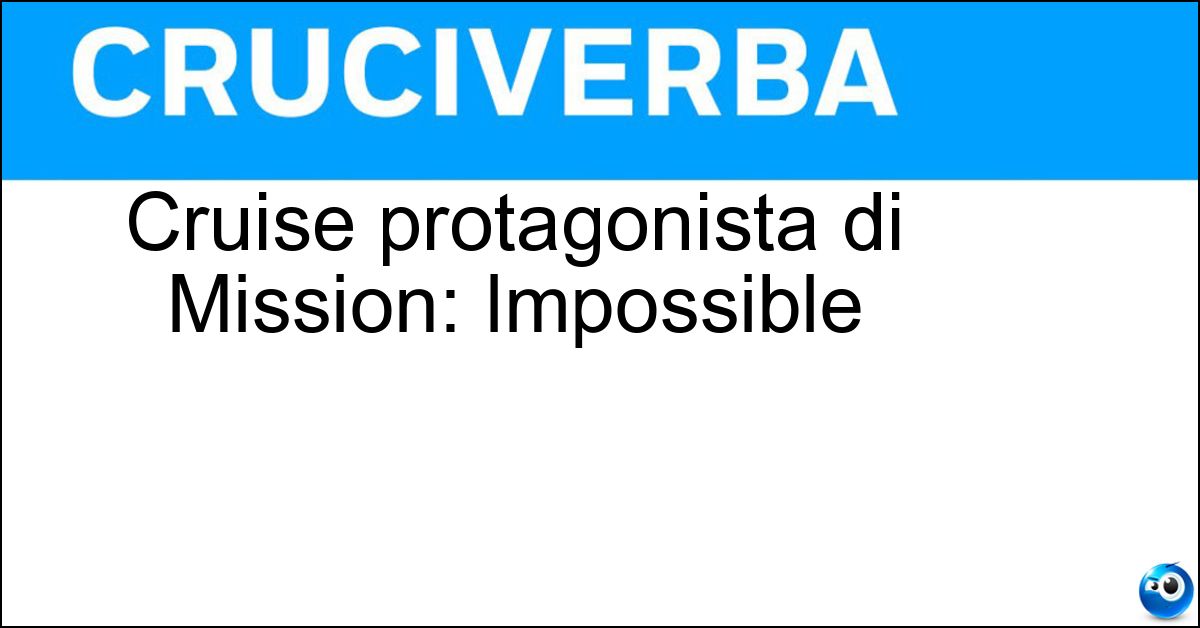 Nei cruciverba e nelle parole crociate, la definizione "Cruise protagonista di Mission: Impossible" corrisponde a una soluzione formata da 3 lettere. È un quesito ricorrente nel mondo dell’enigmistica, presente con frequenza sia nelle griglie stampate sia nei giochi digitali dedicati agli appassionati.