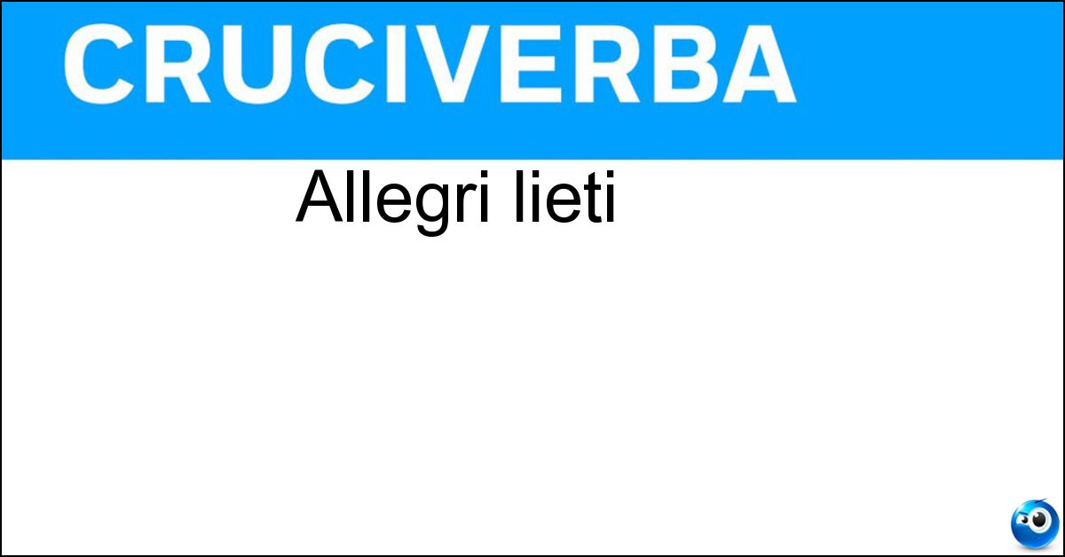 Nei cruciverba e nelle parole crociate, la definizione "Allegri lieti" corrisponde a una soluzione formata da 3 lettere. È un quesito ricorrente nel mondo dell’enigmistica, presente con frequenza sia nelle griglie stampate sia nei giochi digitali dedicati agli appassionati.