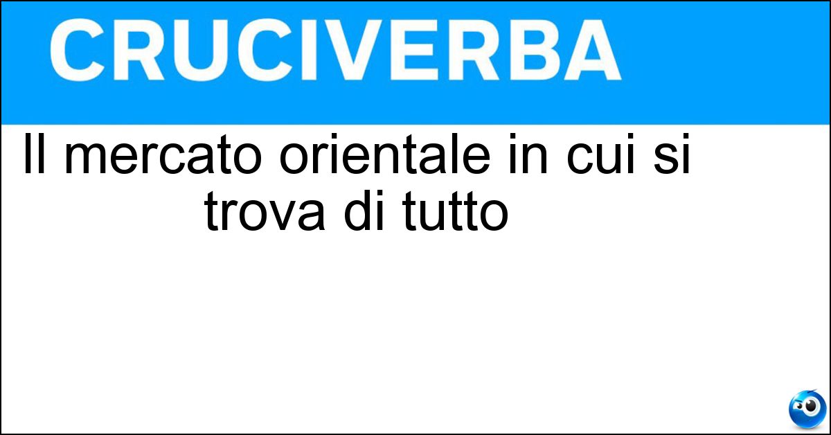 Nei cruciverba e nelle parole crociate, la definizione "Il mercato orientale in cui si trova di tutto" corrisponde a una soluzione formata da 5 lettere. È un quesito ricorrente nel mondo dell’enigmistica, presente con frequenza sia nelle griglie stampate sia nei giochi digitali dedicati agli appassionati.