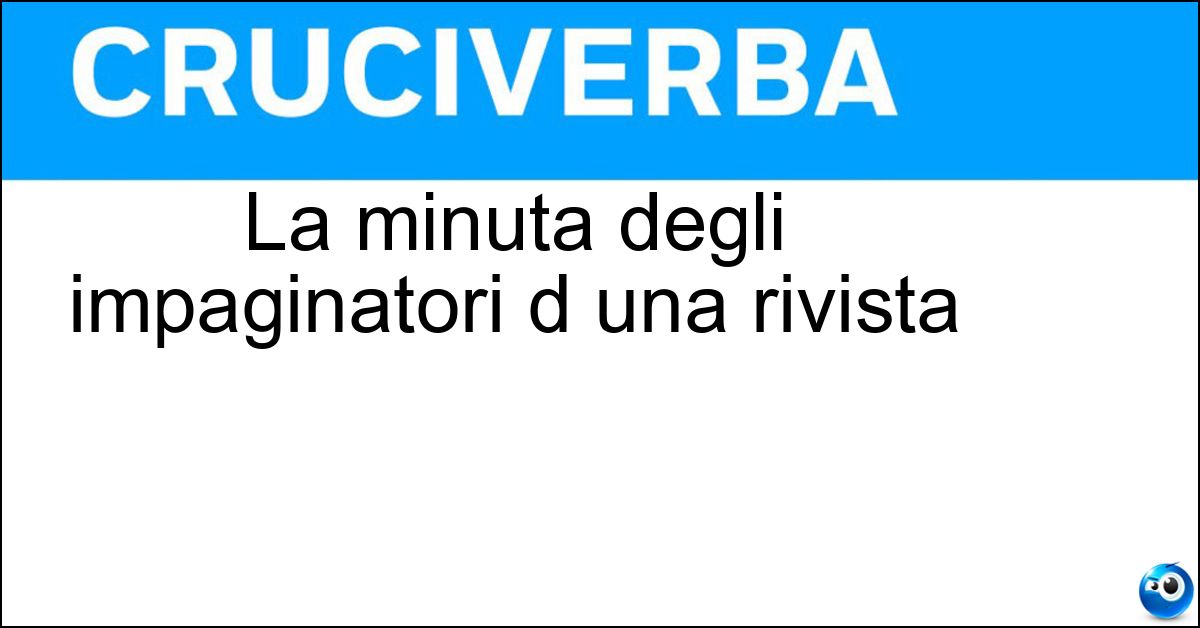 Nei cruciverba e nelle parole crociate, la definizione "La minuta degli impaginatori d una rivista" corrisponde a una soluzione formata da 6 lettere. È un quesito ricorrente nel mondo dell’enigmistica, presente con frequenza sia nelle griglie stampate sia nei giochi digitali dedicati agli appassionati.