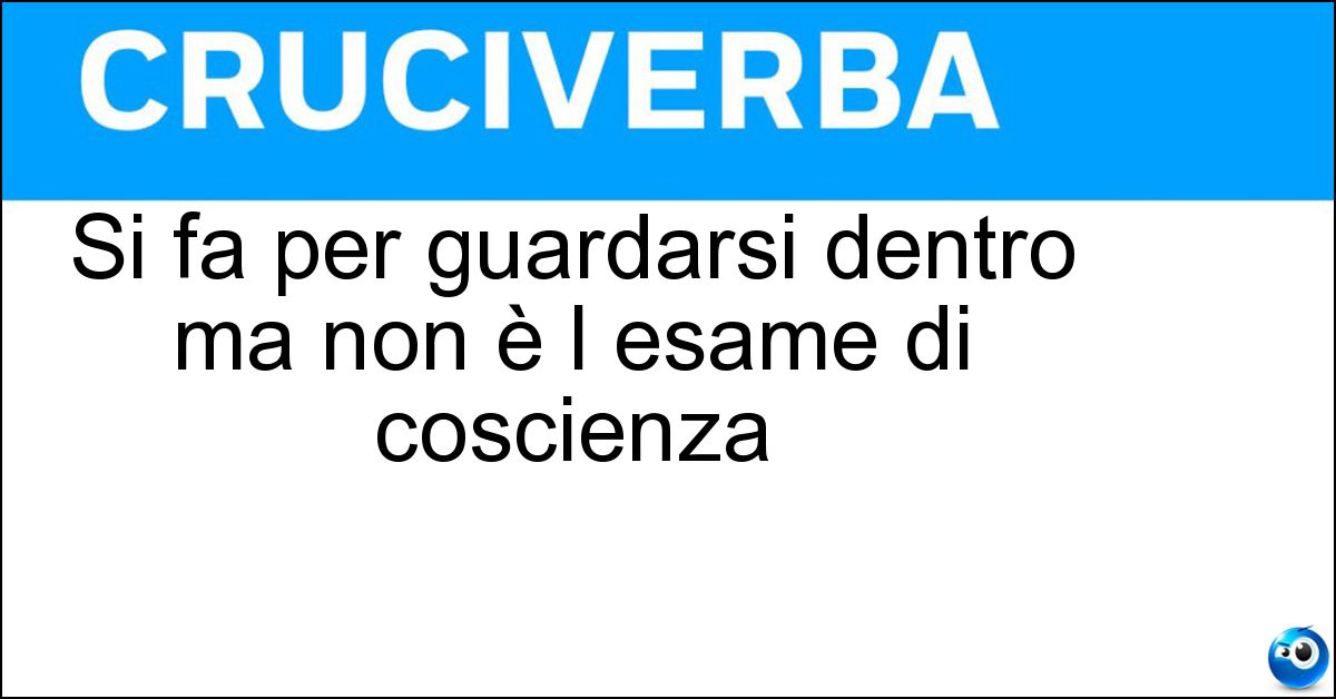 Nei cruciverba e nelle parole crociate, la definizione "Si fa per guardarsi dentro ma non è l esame di coscienza" corrisponde a una soluzione formata da 3 lettere. È un quesito ricorrente nel mondo dell’enigmistica, presente con frequenza sia nelle griglie stampate sia nei giochi digitali dedicati agli appassionati.