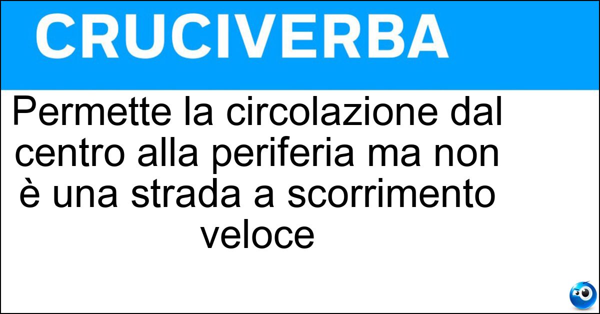 Nei cruciverba e nelle parole crociate, la definizione "Permette la circolazione dal centro alla periferia ma non è una strada a scorrimento veloce" corrisponde a una soluzione formata da 7 lettere. È un quesito ricorrente nel mondo dell’enigmistica, presente con frequenza sia nelle griglie stampate sia nei giochi digitali dedicati agli appassionati.