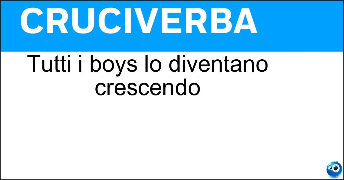 Se la definizione "Tutti i boys lo diventano crescendo" è presente nel tuo schema, qui è indicata la soluzione più adatta per risolverla. In alcuni casi, il significato della definizione può variare leggermente in base al contesto del cruciverba e alle lettere fornite dagli incroci. Nonostante queste possibili differenze, l’analisi effettuata su "Tutti i boys lo diventano crescendo" conferma che la soluzione indicata è quella più coerente e compatibile con la maggior parte degli schemi italiani.