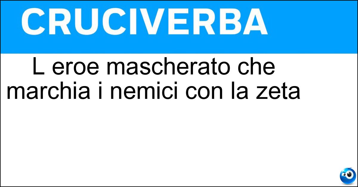 Nei cruciverba e nelle parole crociate, la definizione "L eroe mascherato che marchia i nemici con la zeta" corrisponde a una soluzione formata da 5 lettere. È un quesito ricorrente nel mondo dell’enigmistica, presente con frequenza sia nelle griglie stampate sia nei giochi digitali dedicati agli appassionati.