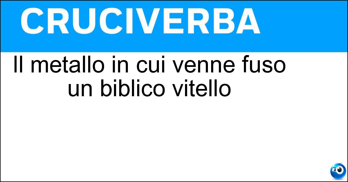 Nei cruciverba e nelle parole crociate, la definizione "Il metallo in cui venne fuso un biblico vitello" corrisponde a una soluzione formata da 3 lettere. È un quesito ricorrente nel mondo dell’enigmistica, presente con frequenza sia nelle griglie stampate sia nei giochi digitali dedicati agli appassionati.