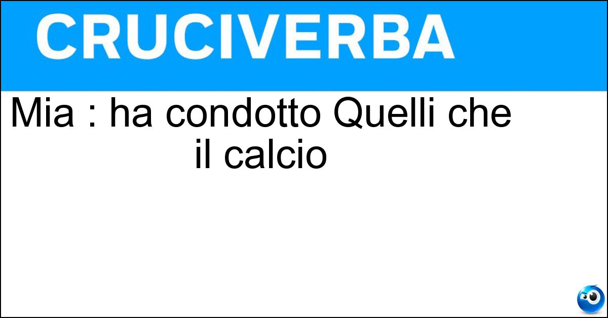 Nei cruciverba e nelle parole crociate, la definizione "Mia : ha condotto Quelli che il calcio" corrisponde a una soluzione formata da 5 lettere. È un quesito ricorrente nel mondo dell’enigmistica, presente con frequenza sia nelle griglie stampate sia nei giochi digitali dedicati agli appassionati.