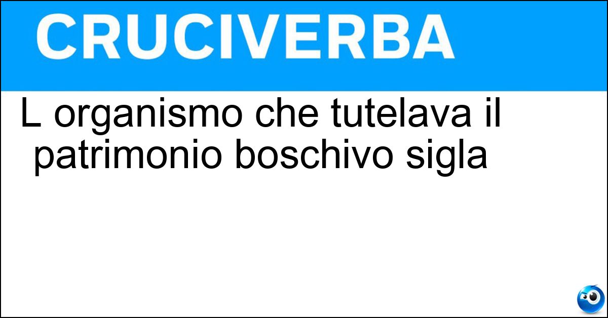 Nei cruciverba e nelle parole crociate, la definizione "L organismo che tutelava il patrimonio boschivo sigla" corrisponde a una soluzione formata da 3 lettere. È un quesito ricorrente nel mondo dell’enigmistica, presente con frequenza sia nelle griglie stampate sia nei giochi digitali dedicati agli appassionati.