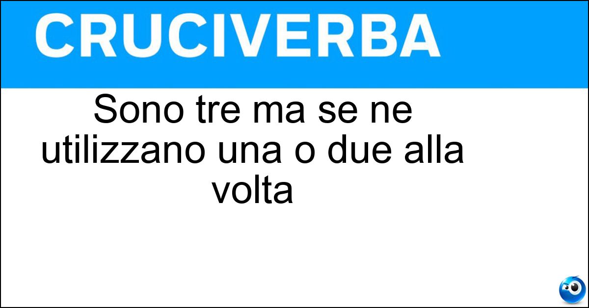 Nei cruciverba e nelle parole crociate, la definizione "Sono tre ma se ne utilizzano una o due alla volta" corrisponde a una soluzione formata da 6 lettere. È un quesito ricorrente nel mondo dell’enigmistica, presente con frequenza sia nelle griglie stampate sia nei giochi digitali dedicati agli appassionati.