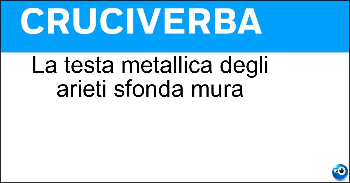 Nei cruciverba e nelle parole crociate, la definizione "La testa metallica degli arieti sfonda mura" corrisponde a una soluzione formata da 7 lettere. È un quesito ricorrente nel mondo dell’enigmistica, presente con frequenza sia nelle griglie stampate sia nei giochi digitali dedicati agli appassionati.