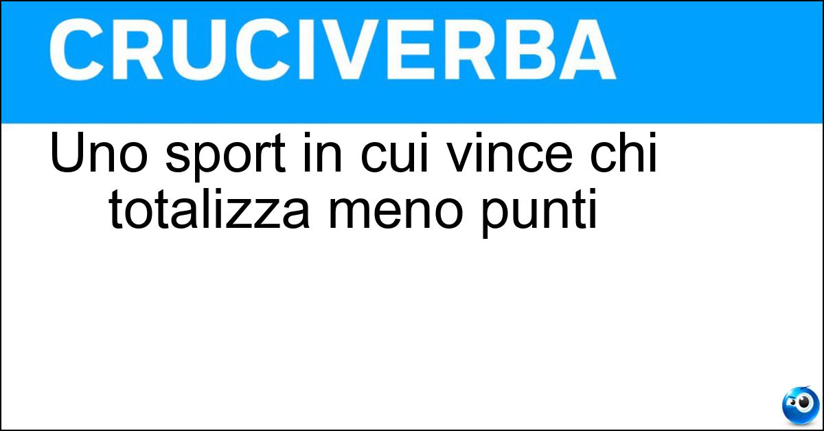 Nei cruciverba e nelle parole crociate, la definizione "Uno sport in cui vince chi totalizza meno punti" corrisponde a una soluzione formata da 4 lettere. È un quesito ricorrente nel mondo dell’enigmistica, presente con frequenza sia nelle griglie stampate sia nei giochi digitali dedicati agli appassionati.