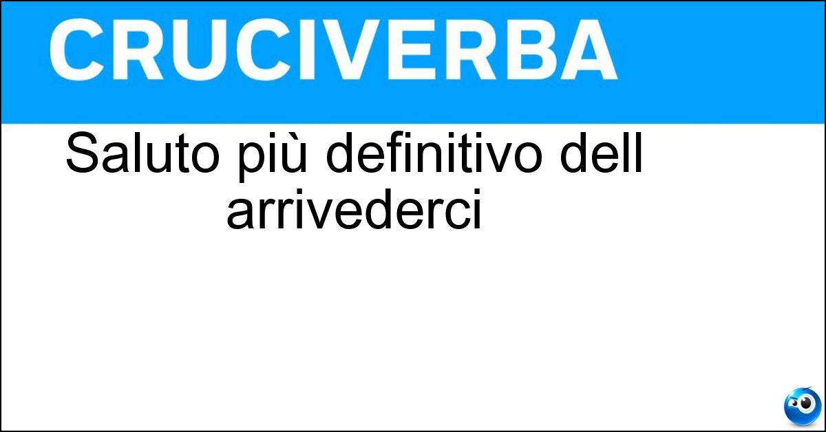 Nei cruciverba e nelle parole crociate, la definizione "Saluto più definitivo dell arrivederci" corrisponde a una soluzione formata da 5 lettere. È un quesito ricorrente nel mondo dell’enigmistica, presente con frequenza sia nelle griglie stampate sia nei giochi digitali dedicati agli appassionati.