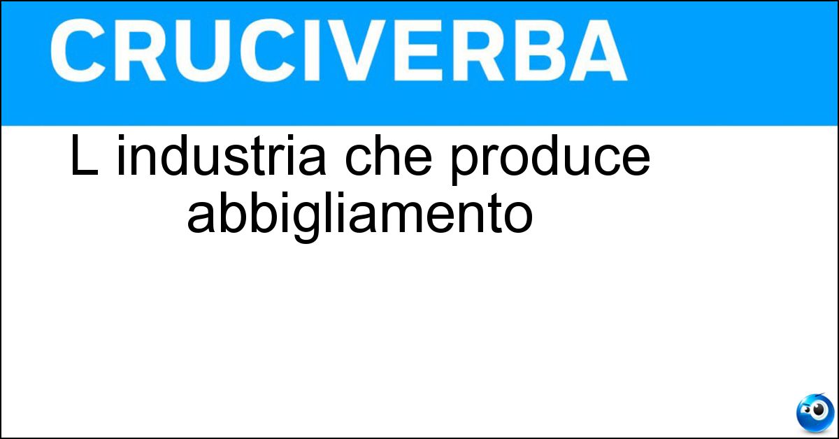 Adesso divertiti e prova a risolvere anche queste definizioni correlate: Lavora per vestireL industria che ci vesteTipo di industria che produce filatiIndustria che produce e commercializza formaggiI colletti blu di un industriaProduce televisoriProduce e vende watt