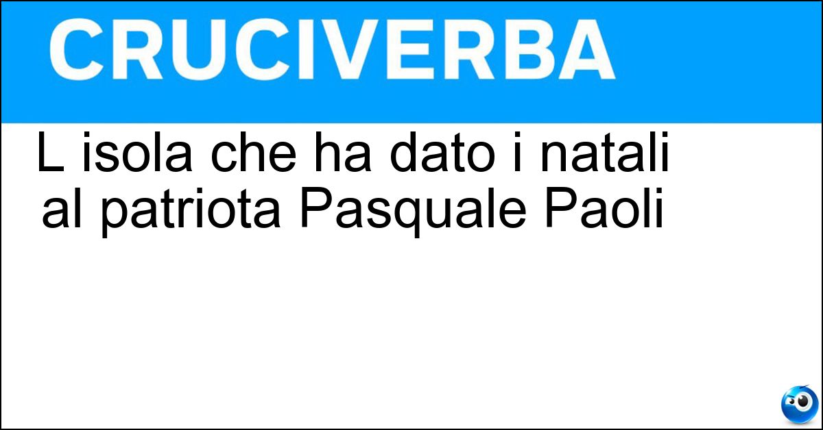 Nei cruciverba e nelle parole crociate, la definizione "L isola che ha dato i natali al patriota Pasquale Paoli" corrisponde a una soluzione formata da 7 lettere. È un quesito ricorrente nel mondo dell’enigmistica, presente con frequenza sia nelle griglie stampate sia nei giochi digitali dedicati agli appassionati.