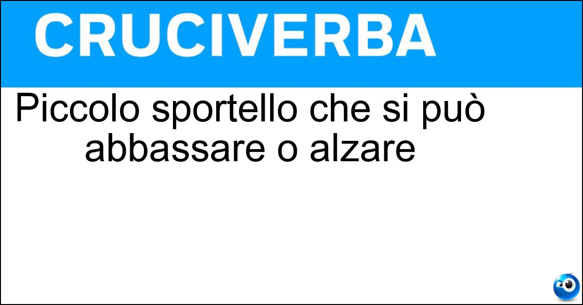 Nei cruciverba e nelle parole crociate, la definizione "Piccolo sportello che si può abbassare o alzare" corrisponde a una soluzione formata da 9 lettere. È un quesito ricorrente nel mondo dell’enigmistica, presente con frequenza sia nelle griglie stampate sia nei giochi digitali dedicati agli appassionati.