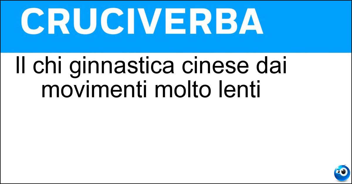 Nei cruciverba e nelle parole crociate, la definizione "Il chi ginnastica cinese dai movimenti molto lenti" corrisponde a una soluzione formata da 3 lettere. È un quesito ricorrente nel mondo dell’enigmistica, presente con frequenza sia nelle griglie stampate sia nei giochi digitali dedicati agli appassionati.