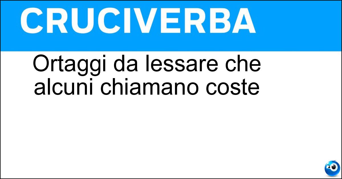 Nei cruciverba e nelle parole crociate, la definizione "Ortaggi da lessare che alcuni chiamano coste" corrisponde a una soluzione formata da 7 lettere. È un quesito ricorrente nel mondo dell’enigmistica, presente con frequenza sia nelle griglie stampate sia nei giochi digitali dedicati agli appassionati.
