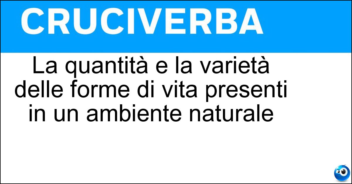 Nei cruciverba e nelle parole crociate, la definizione "La quantità e la varietà delle forme di vita presenti in un ambiente naturale" corrisponde a una soluzione formata da 12 lettere. È un quesito ricorrente nel mondo dell’enigmistica, presente con frequenza sia nelle griglie stampate sia nei giochi digitali dedicati agli appassionati.
