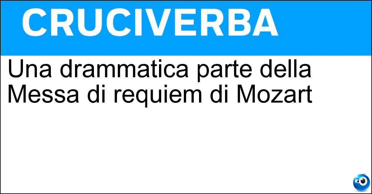 Nei cruciverba e nelle parole crociate, la definizione "Una drammatica parte della Messa di requiem di Mozart" corrisponde a una soluzione formata da 8 lettere. È un quesito ricorrente nel mondo dell’enigmistica, presente con frequenza sia nelle griglie stampate sia nei giochi digitali dedicati agli appassionati.