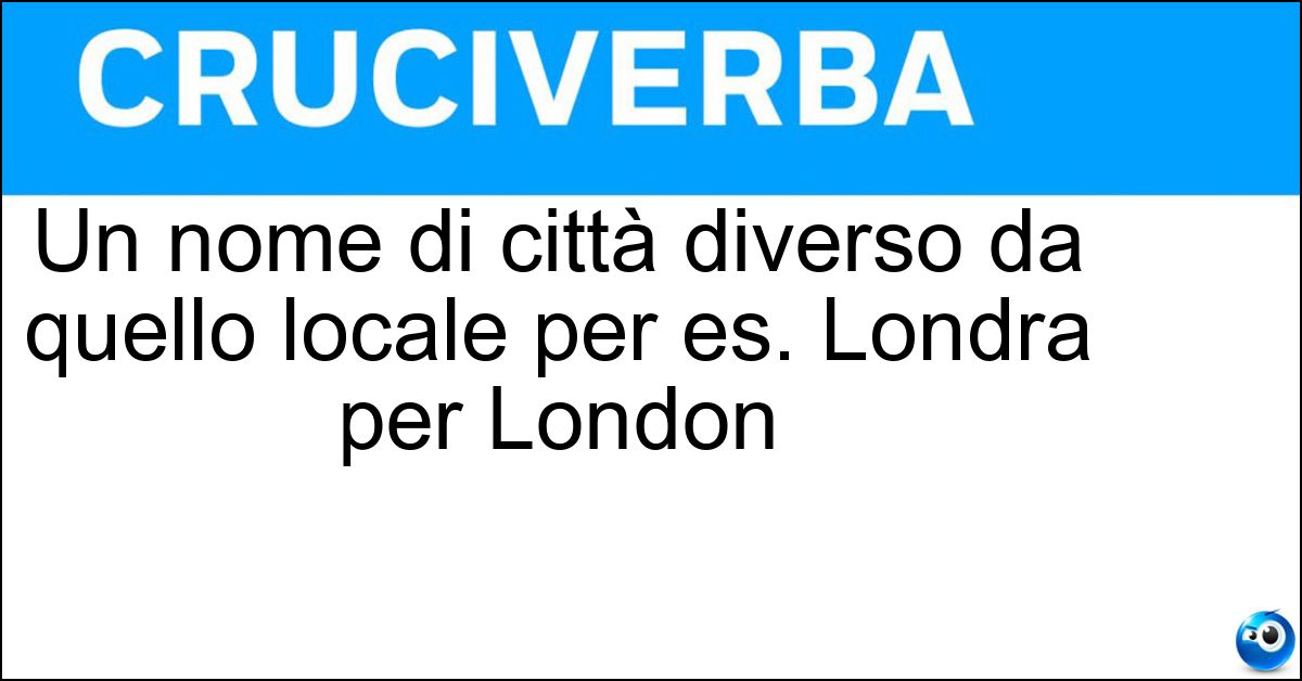 Nei cruciverba e nelle parole crociate, la definizione "Un nome di città diverso da quello locale per es. Londra per London" corrisponde a una soluzione formata da 7 lettere. È un quesito ricorrente nel mondo dell’enigmistica, presente con frequenza sia nelle griglie stampate sia nei giochi digitali dedicati agli appassionati.