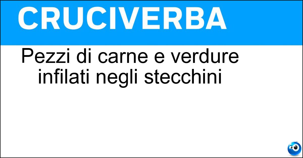 Nei cruciverba e nelle parole crociate, la definizione "Pezzi di carne e verdure infilati negli stecchini" corrisponde a una soluzione formata da 8 lettere. È un quesito ricorrente nel mondo dell’enigmistica, presente con frequenza sia nelle griglie stampate sia nei giochi digitali dedicati agli appassionati.