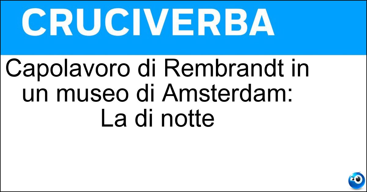 Nei cruciverba e nelle parole crociate, la definizione "Capolavoro di Rembrandt in un museo di Amsterdam: La di notte" corrisponde a una soluzione formata da 5 lettere. È un quesito ricorrente nel mondo dell’enigmistica, presente con frequenza sia nelle griglie stampate sia nei giochi digitali dedicati agli appassionati.