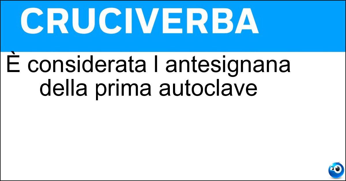 Nei cruciverba e nelle parole crociate, la definizione "È considerata l antesignana della prima autoclave" corrisponde a una soluzione formata da 14 lettere. È un quesito ricorrente nel mondo dell’enigmistica, presente con frequenza sia nelle griglie stampate sia nei giochi digitali dedicati agli appassionati.