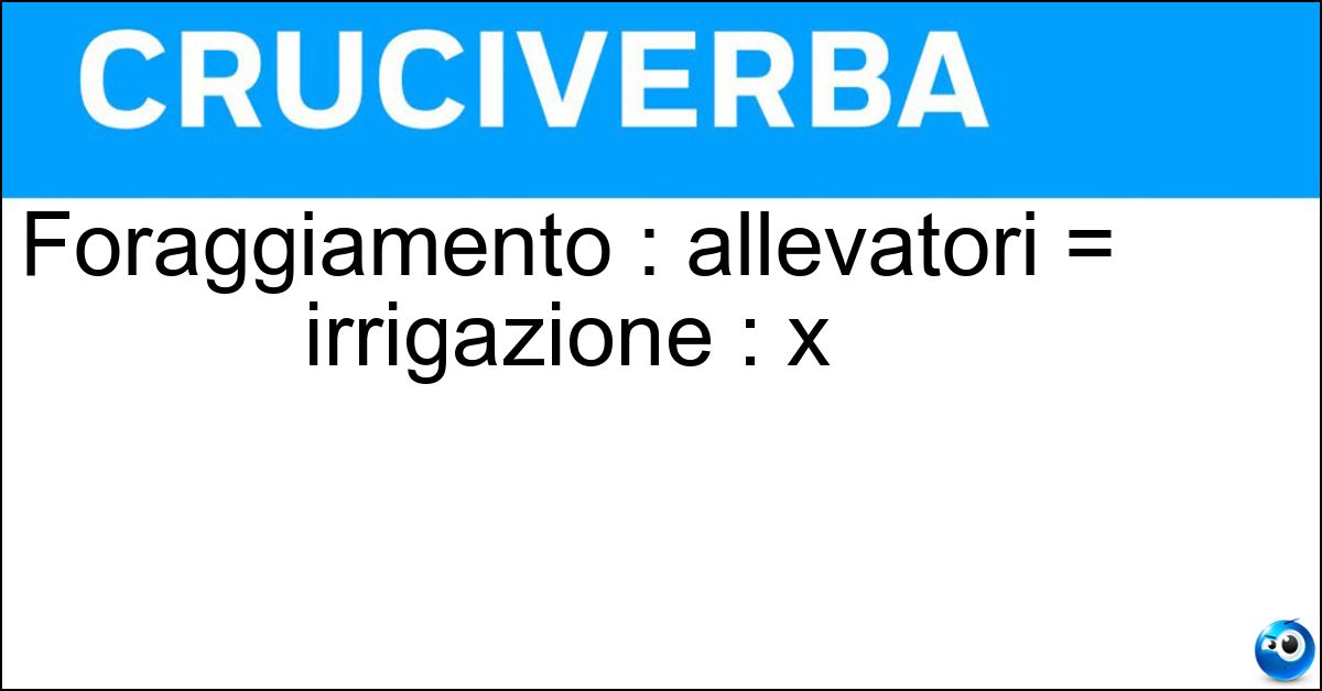 Nei cruciverba e nelle parole crociate, la definizione "Foraggiamento : allevatori = irrigazione : x" corrisponde a una soluzione formata da 11 lettere. È un quesito ricorrente nel mondo dell’enigmistica, presente con frequenza sia nelle griglie stampate sia nei giochi digitali dedicati agli appassionati.