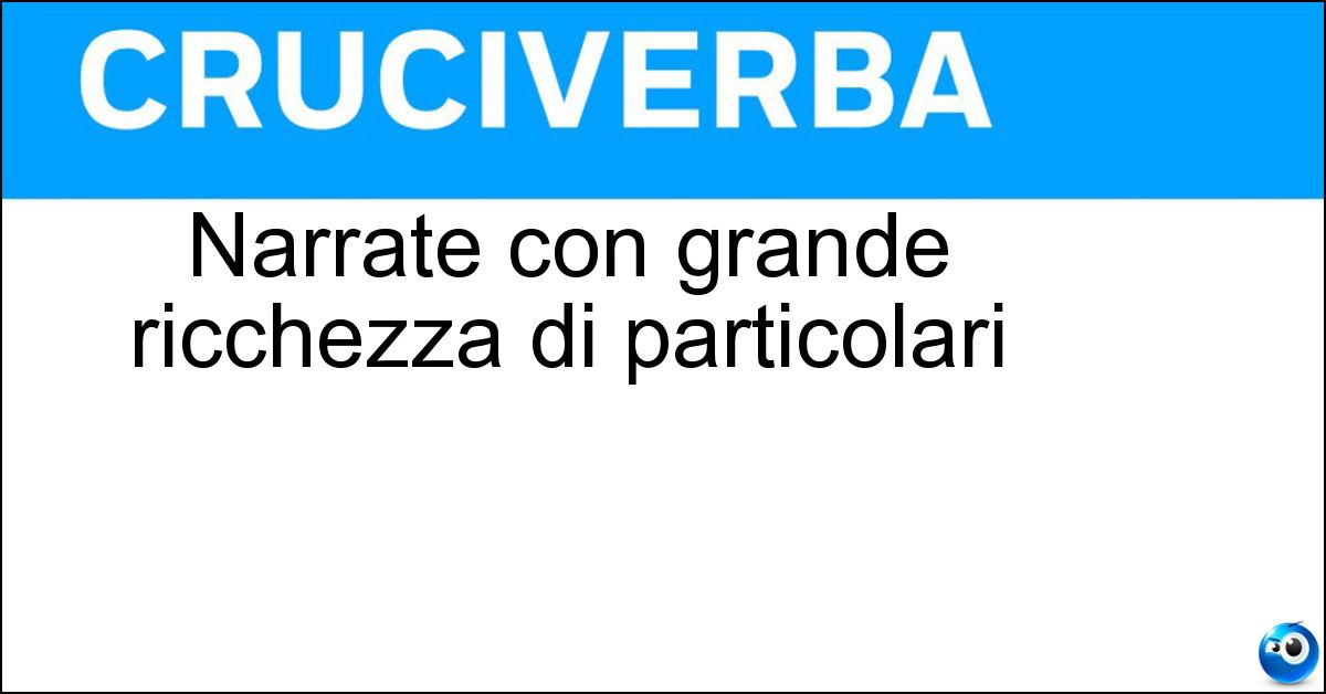 Nei cruciverba e nelle parole crociate, la definizione "Narrate con grande ricchezza di particolari" corrisponde a una soluzione formata da 11 lettere. È un quesito ricorrente nel mondo dell’enigmistica, presente con frequenza sia nelle griglie stampate sia nei giochi digitali dedicati agli appassionati.