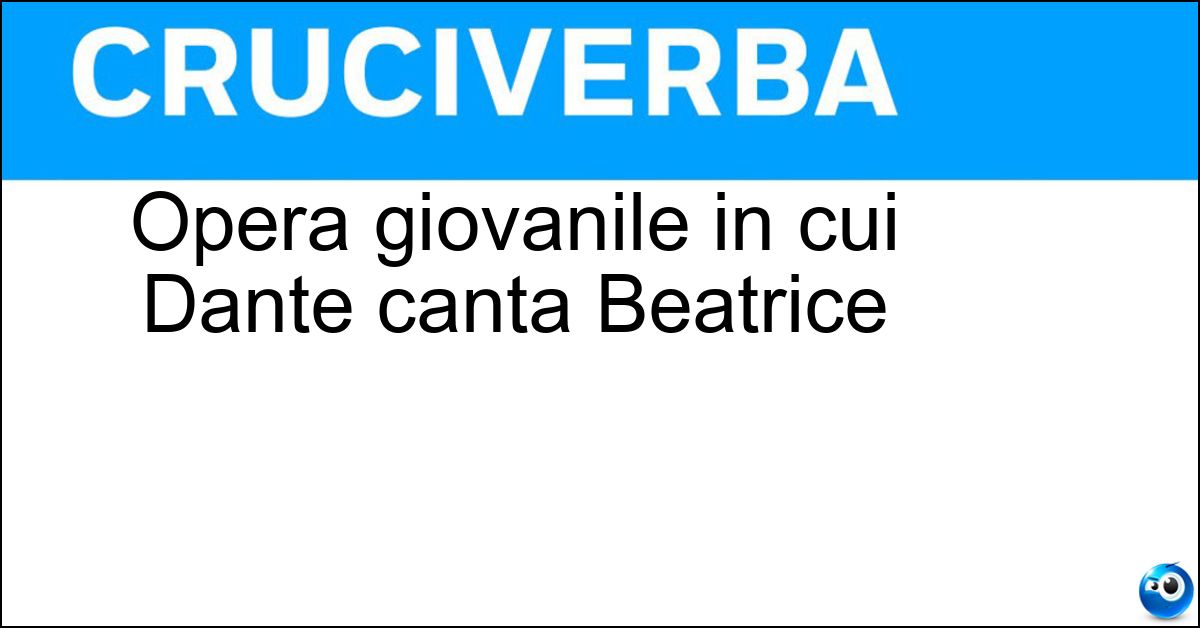 Nei cruciverba e nelle parole crociate, la definizione "Opera giovanile in cui Dante canta Beatrice" corrisponde a una soluzione formata da 9 lettere. È un quesito ricorrente nel mondo dell’enigmistica, presente con frequenza sia nelle griglie stampate sia nei giochi digitali dedicati agli appassionati.