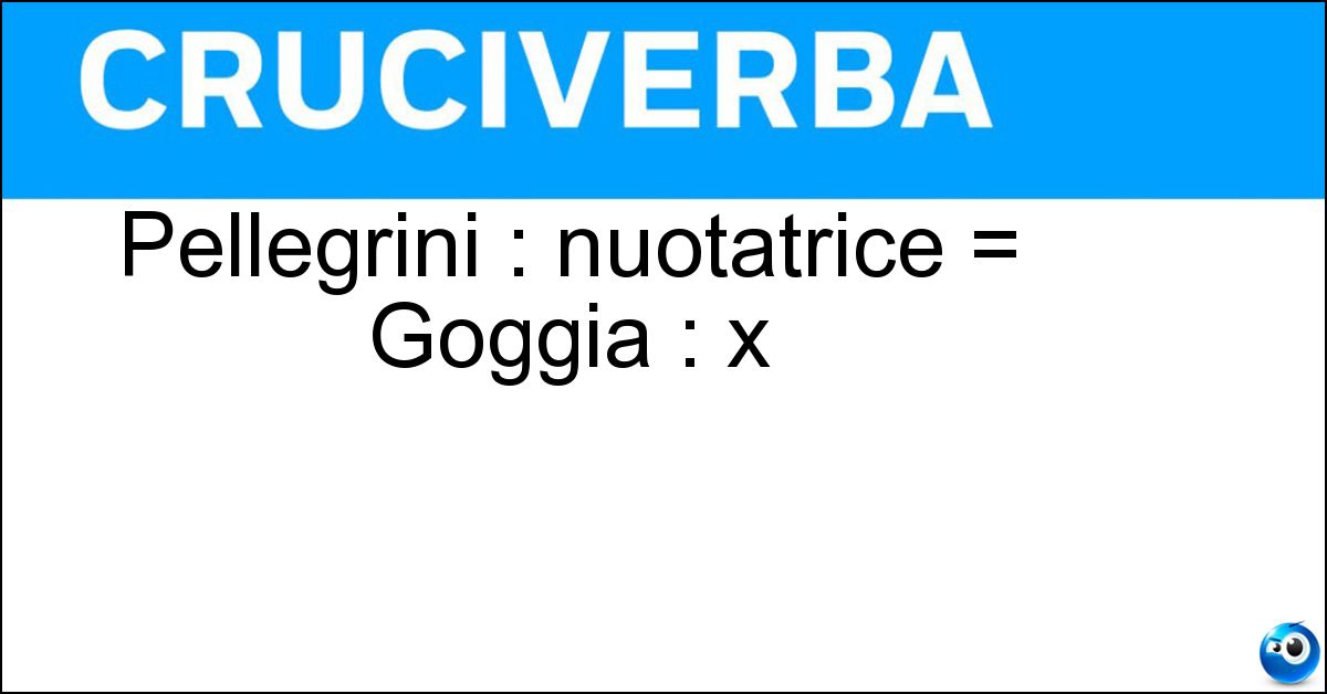 Nei cruciverba e nelle parole crociate, la definizione "Pellegrini : nuotatrice = Goggia : x" corrisponde a una soluzione formata da 9 lettere. È un quesito ricorrente nel mondo dell’enigmistica, presente con frequenza sia nelle griglie stampate sia nei giochi digitali dedicati agli appassionati.
