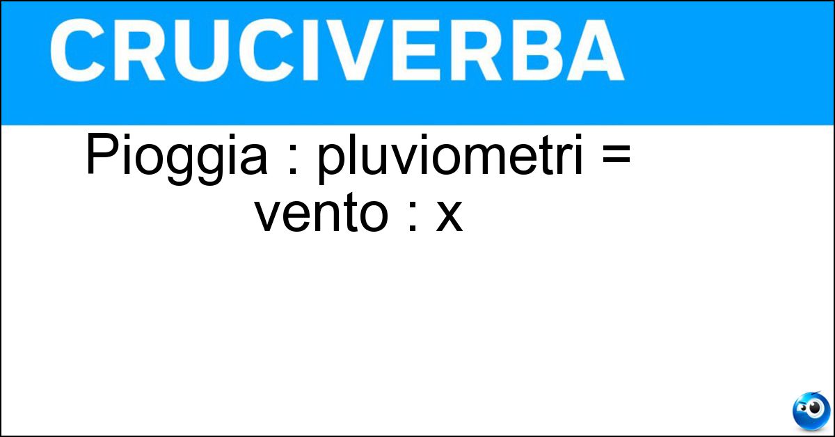 Nei cruciverba e nelle parole crociate, la definizione "Pioggia : pluviometri = vento : x" corrisponde a una soluzione formata da 10 lettere. È un quesito ricorrente nel mondo dell’enigmistica, presente con frequenza sia nelle griglie stampate sia nei giochi digitali dedicati agli appassionati.