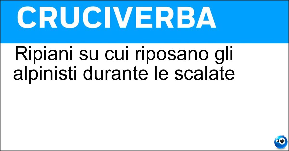 Nei cruciverba e nelle parole crociate, la definizione "Ripiani su cui riposano gli alpinisti durante le scalate" corrisponde a una soluzione formata da 5 lettere. È un quesito ricorrente nel mondo dell’enigmistica, presente con frequenza sia nelle griglie stampate sia nei giochi digitali dedicati agli appassionati.