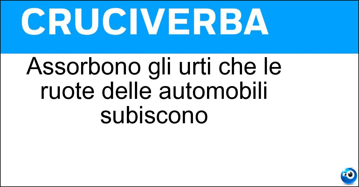 Nei cruciverba e nelle parole crociate, la definizione "Assorbono gli urti che le ruote delle automobili subiscono" corrisponde a una soluzione formata da 15 lettere. È un quesito ricorrente nel mondo dell’enigmistica, presente con frequenza sia nelle griglie stampate sia nei giochi digitali dedicati agli appassionati.