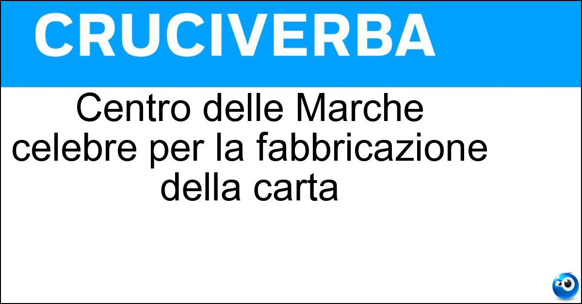 Nei cruciverba e nelle parole crociate, la definizione "Centro delle Marche celebre per la fabbricazione della carta" corrisponde a una soluzione formata da 8 lettere. È un quesito ricorrente nel mondo dell’enigmistica, presente con frequenza sia nelle griglie stampate sia nei giochi digitali dedicati agli appassionati.