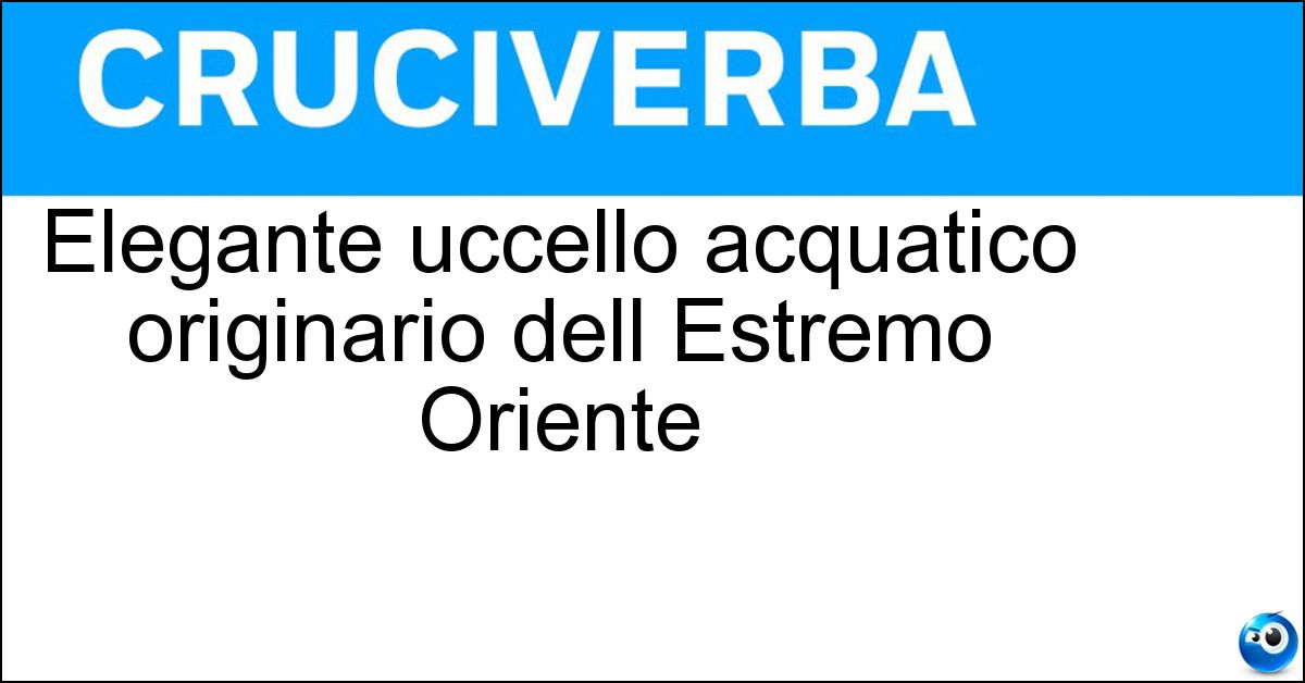 La definizione "Elegante uccello acquatico originario dell Estremo Oriente" compare frequentemente nei cruciverba e in questa pagina è disponibile la soluzione corretta per completare lo schema. In alcuni casi, il significato della definizione può variare leggermente in base al contesto del cruciverba e alle lettere fornite dagli incroci. Nonostante queste possibili differenze, l’analisi effettuata su "Elegante uccello acquatico originario dell Estremo Oriente" conferma che la soluzione indicata è quella più coerente e compatibile con la maggior parte degli schemi italiani.