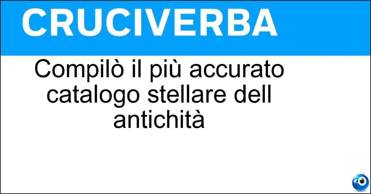 Nei cruciverba e nelle parole crociate, la definizione "Compilò il più accurato catalogo stellare dell antichità" corrisponde a una soluzione formata da 14 lettere. È un quesito ricorrente nel mondo dell’enigmistica, presente con frequenza sia nelle griglie stampate sia nei giochi digitali dedicati agli appassionati.
