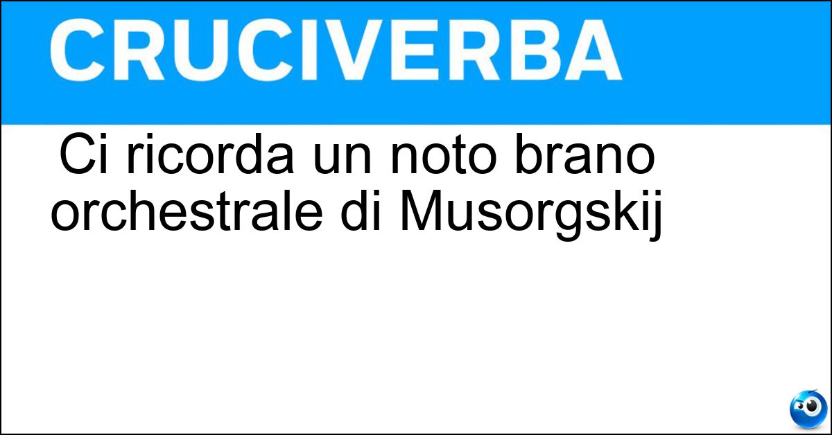 Nei cruciverba e nelle parole crociate, la definizione "Ci ricorda un noto brano orchestrale di Musorgskij" corrisponde a una soluzione formata da 10 lettere. È un quesito ricorrente nel mondo dell’enigmistica, presente con frequenza sia nelle griglie stampate sia nei giochi digitali dedicati agli appassionati.