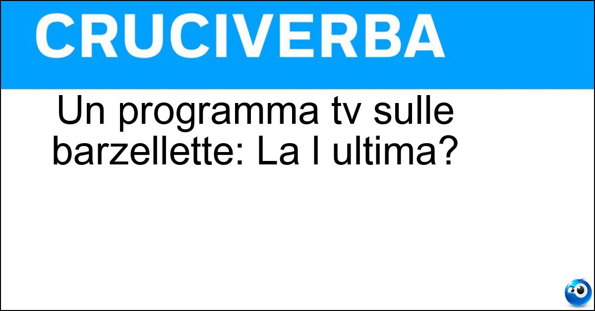 Nei cruciverba e nelle parole crociate, la definizione "Un programma tv sulle barzellette: La l ultima?" corrisponde a una soluzione formata da 3 lettere. È un quesito ricorrente nel mondo dell’enigmistica, presente con frequenza sia nelle griglie stampate sia nei giochi digitali dedicati agli appassionati.