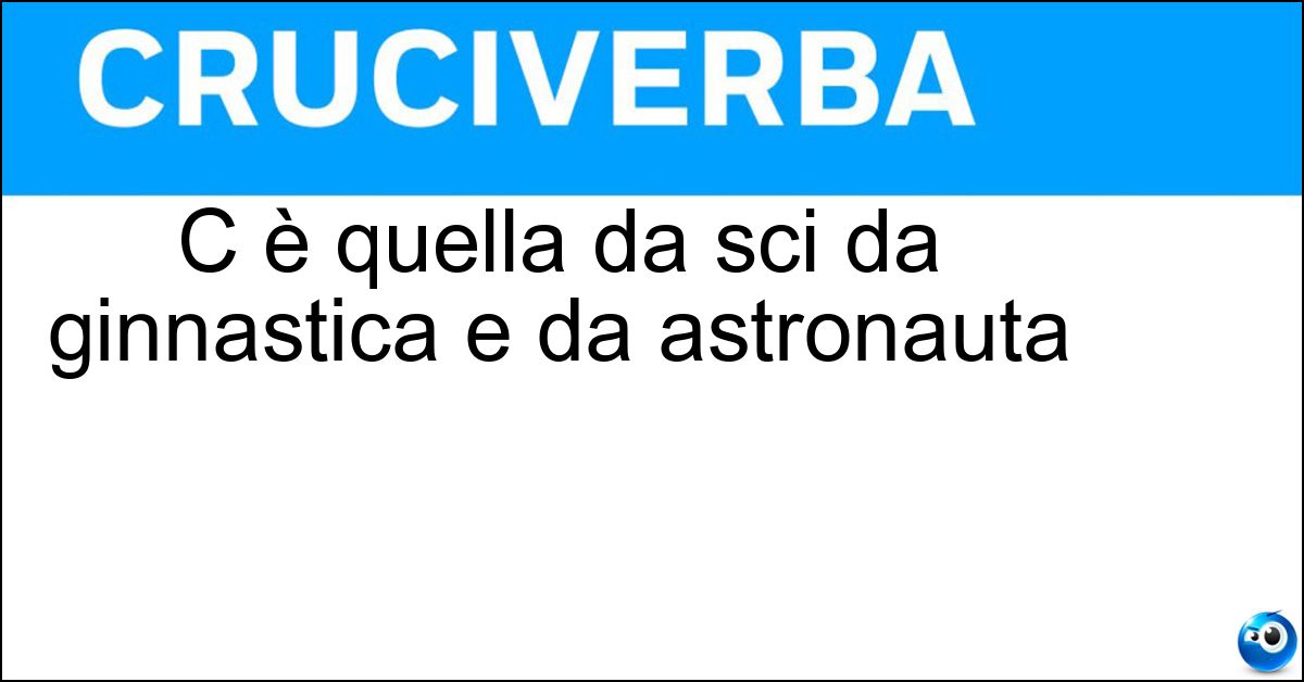 Nei cruciverba e nelle parole crociate, la definizione "C è quella da sci da ginnastica e da astronauta" corrisponde a una soluzione formata da 4 lettere. È un quesito ricorrente nel mondo dell’enigmistica, presente con frequenza sia nelle griglie stampate sia nei giochi digitali dedicati agli appassionati.