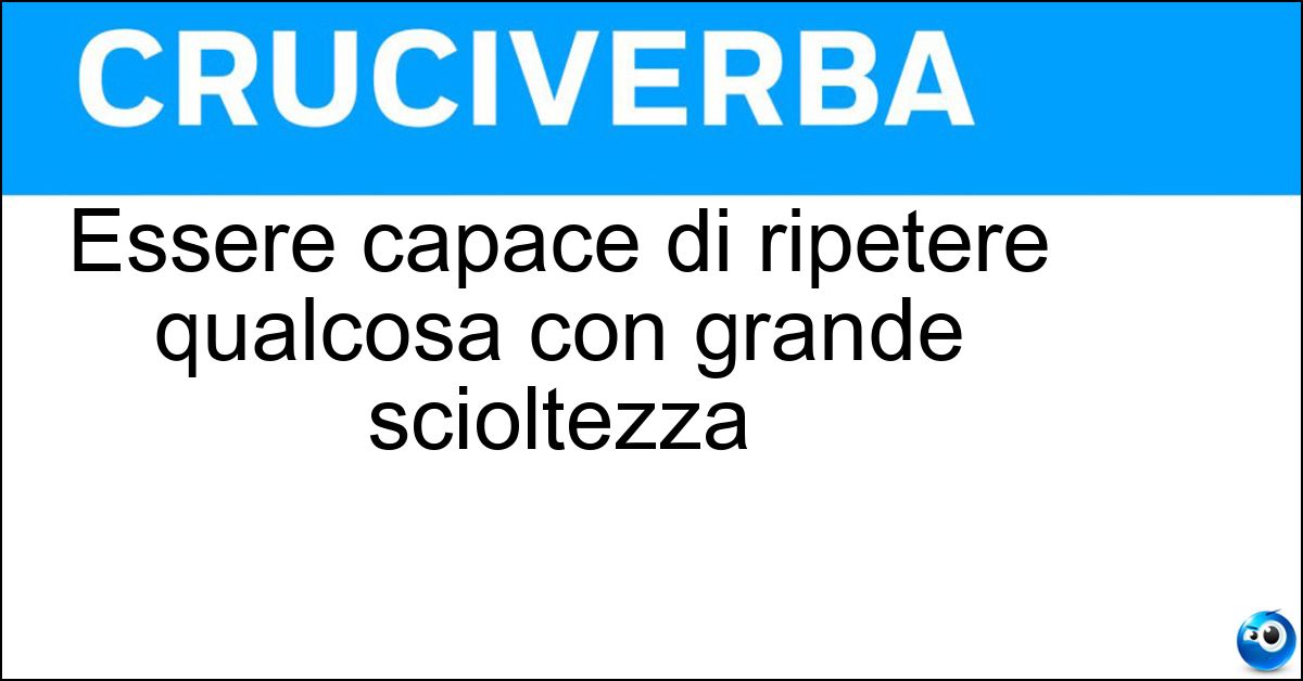 Nei cruciverba e nelle parole crociate, la definizione "Essere capace di ripetere qualcosa con grande scioltezza" corrisponde a una soluzione formata da 15 lettere. È un quesito ricorrente nel mondo dell’enigmistica, presente con frequenza sia nelle griglie stampate sia nei giochi digitali dedicati agli appassionati.