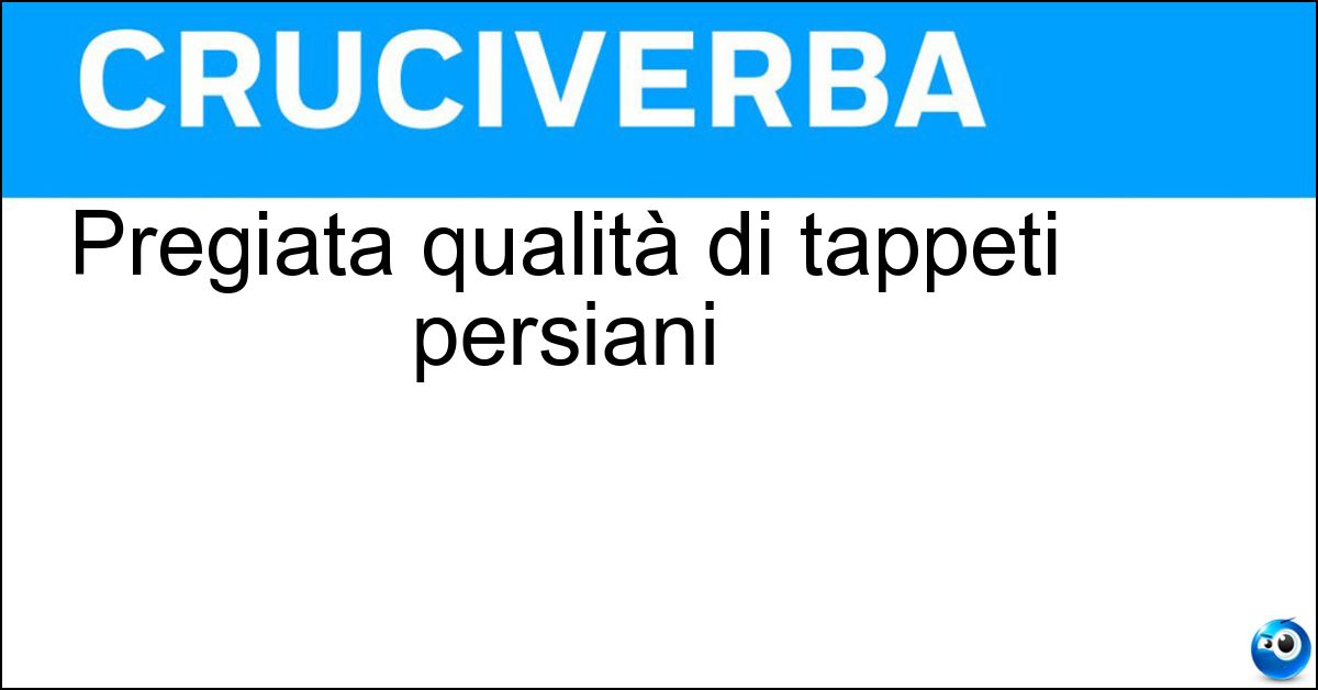 La definizione "Pregiata qualità di tappeti persiani" compare frequentemente nei cruciverba e in questa pagina è disponibile la soluzione corretta per completare lo schema. In alcuni casi, il significato della definizione può variare leggermente in base al contesto del cruciverba e alle lettere fornite dagli incroci. Nonostante queste possibili differenze, l’analisi effettuata su "Pregiata qualità di tappeti persiani" conferma che la soluzione indicata è quella più coerente e compatibile con la maggior parte degli schemi italiani.