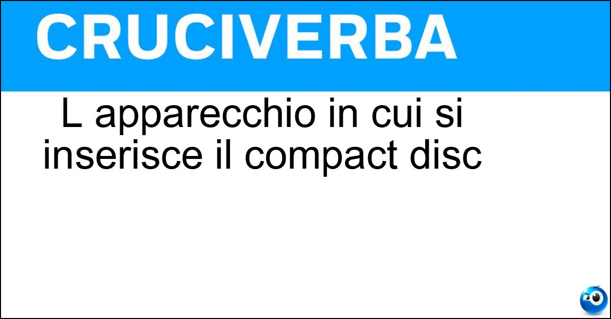 Nei cruciverba e nelle parole crociate, la definizione "L apparecchio in cui si inserisce il compact disc" corrisponde a una soluzione formata da 7 lettere. È un quesito ricorrente nel mondo dell’enigmistica, presente con frequenza sia nelle griglie stampate sia nei giochi digitali dedicati agli appassionati.