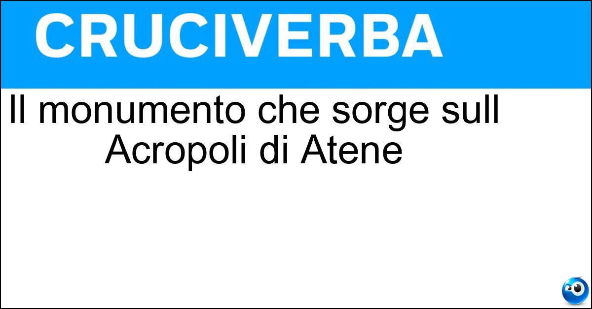 La soluzione di 9 lettere per la definizione 'Il monumento che sorge sull Acropoli di Atene' è 'Partenone'. Scopri altri termini utili per La Settimana Enigmistica, CodyCross e giochi di parole crociate.