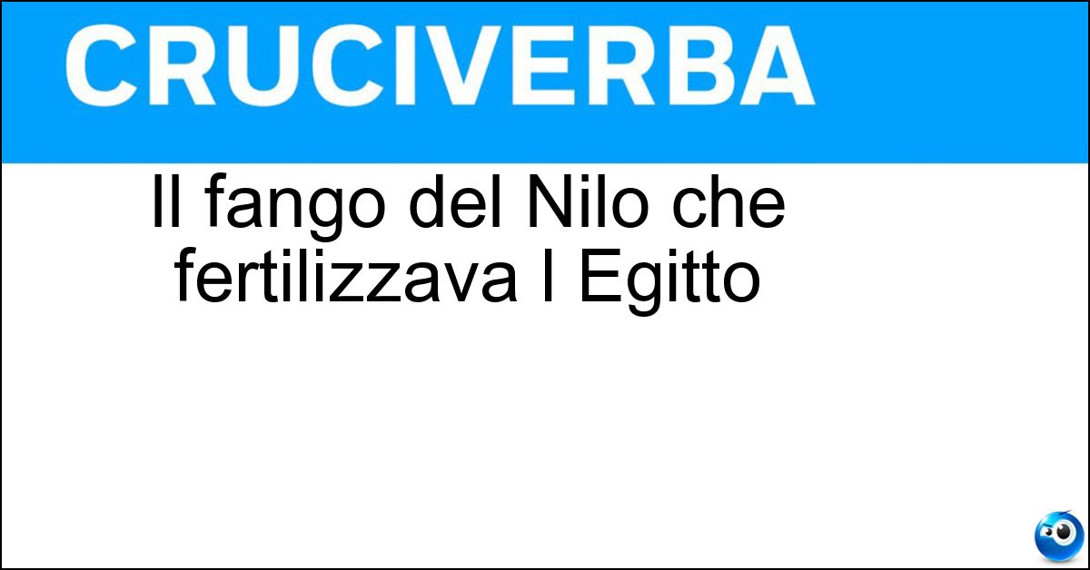 Adesso divertiti e prova a risolvere anche queste definizioni correlate: Fertilizzante fondo melmosoFondo melmosoSorta di fanghigliaQuello del Nilo fertilizzava l EgittoIl Nilo provvedeva a quella dell EgittoCittà dell Egitto sul NiloLocalità archeologica dell Egitto sulla riva destra del NiloIn Italia e in Egitto