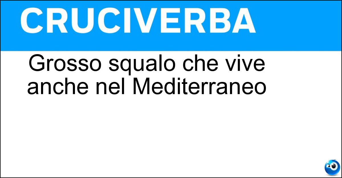 Adesso divertiti e prova a risolvere anche queste definizioni correlate: Grosso e innocuo squalo del MediterraneoIl più grosso dei pipistrelli che vive in EuropaLo squalo azzurro del MediterraneoGrosso cetaceoSqualo dal tipico muso