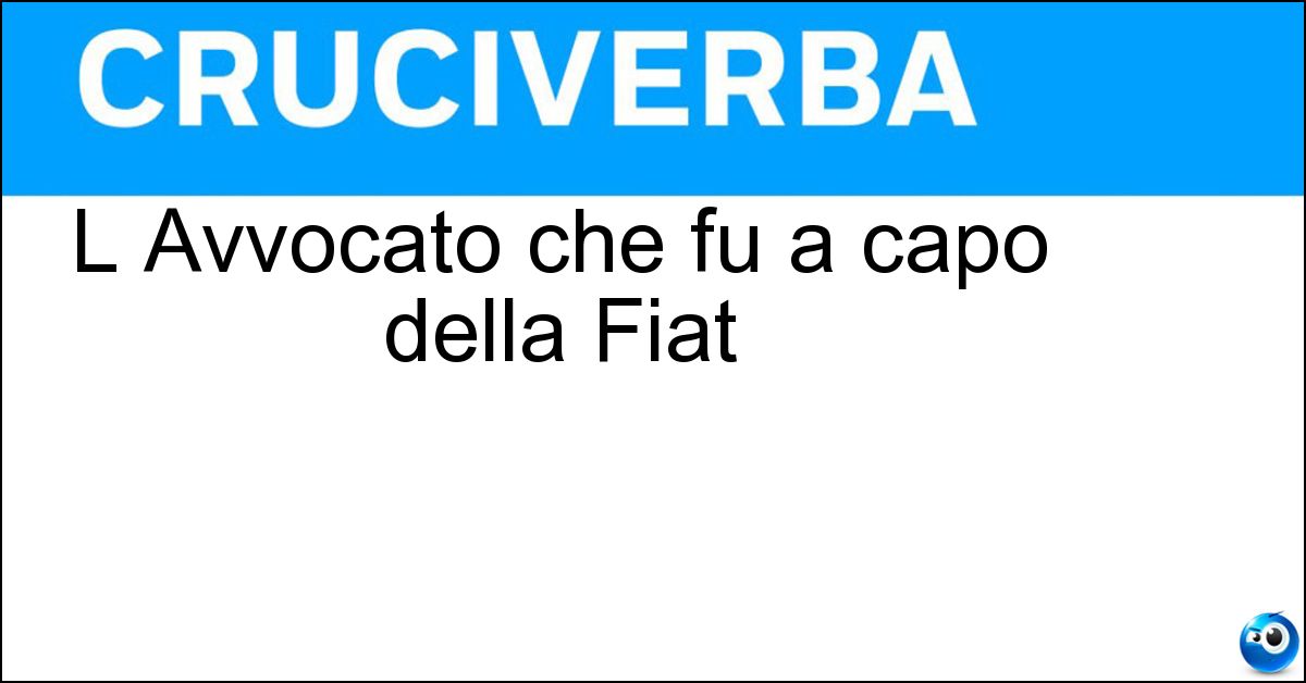 La soluzione di 7 lettere per la definizione 'L Avvocato che fu a capo della Fiat' è 'Agnelli'. Scopri altri termini utili per La Settimana Enigmistica, CodyCross e giochi di parole crociate.
